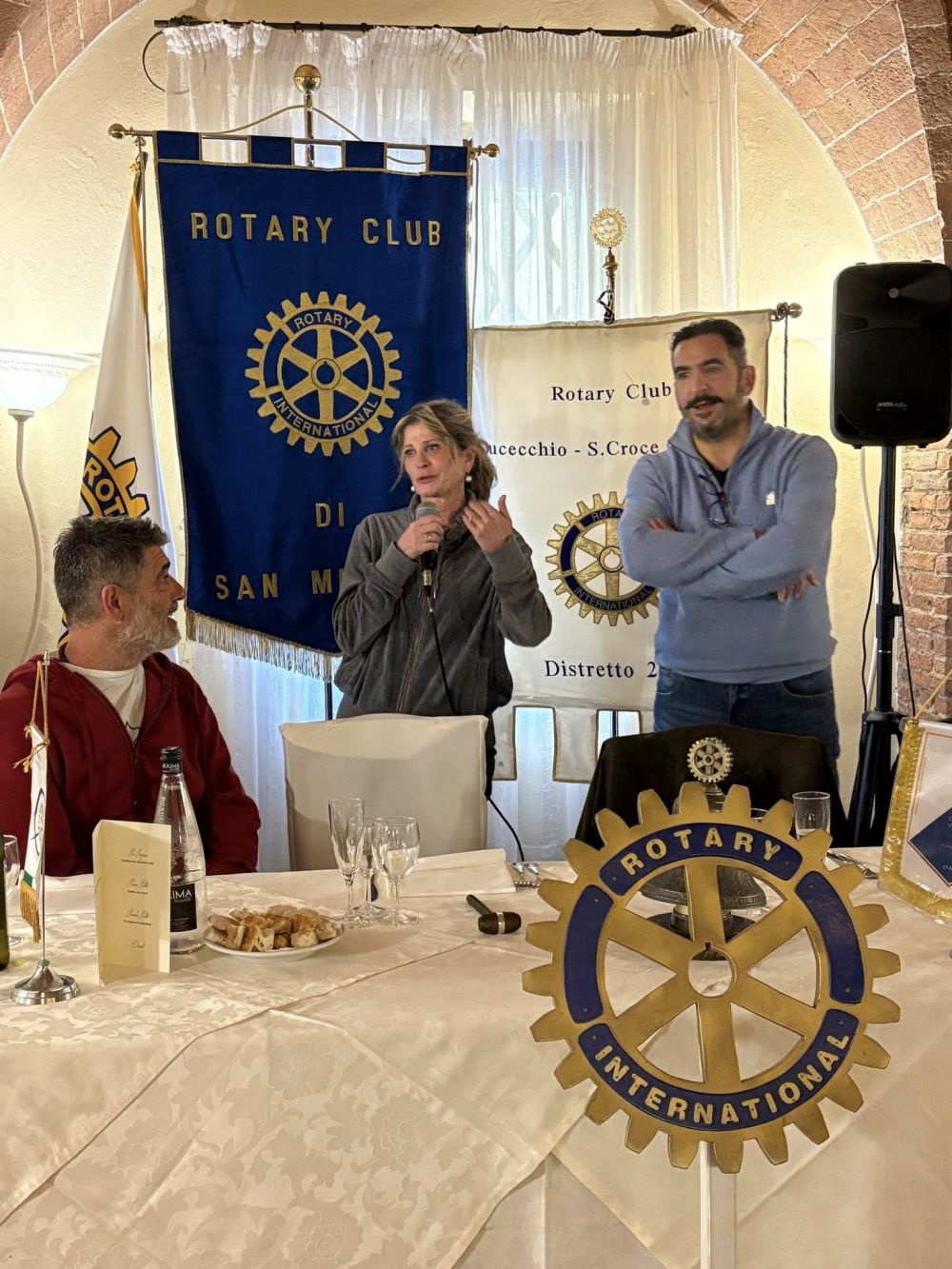 Presenti alla Conviviale ed alla lezione di yoga, oltre ai soci dei due club ed ai presidenti Luca Borgioli e Roberta Salvadori, anche la socia del Rotary club Bisenzio Le Signe, Elisabetta Benvenuti, e, graditissimi ospiti, Monsignor Andrea Pio Cristiani e Giovanna, Grazia e Marcella,