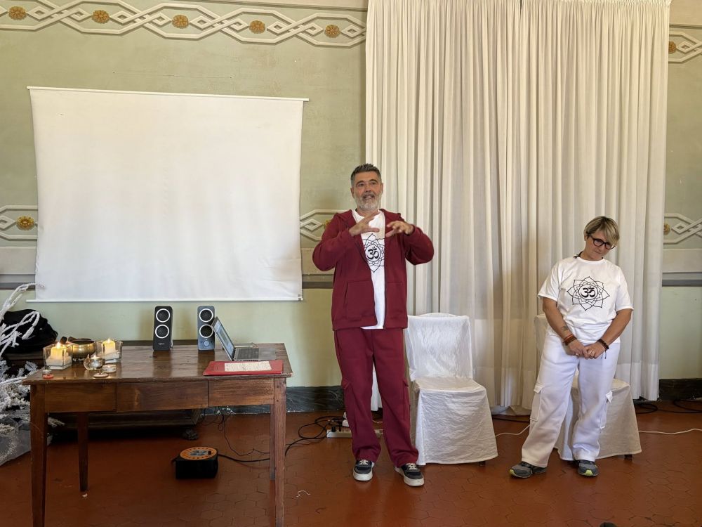 L’insegnate Yoga Roberto Frilli, dopo un’introduzione sulle caratteristiche e le tappe del percorso Yogico, insieme a Simona Lombardi, anche lei insegnante Yoga accreditata, ha sapientemente guidato un’interessantissima lezione pratica di Yoga sulla sedia.