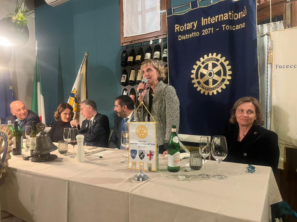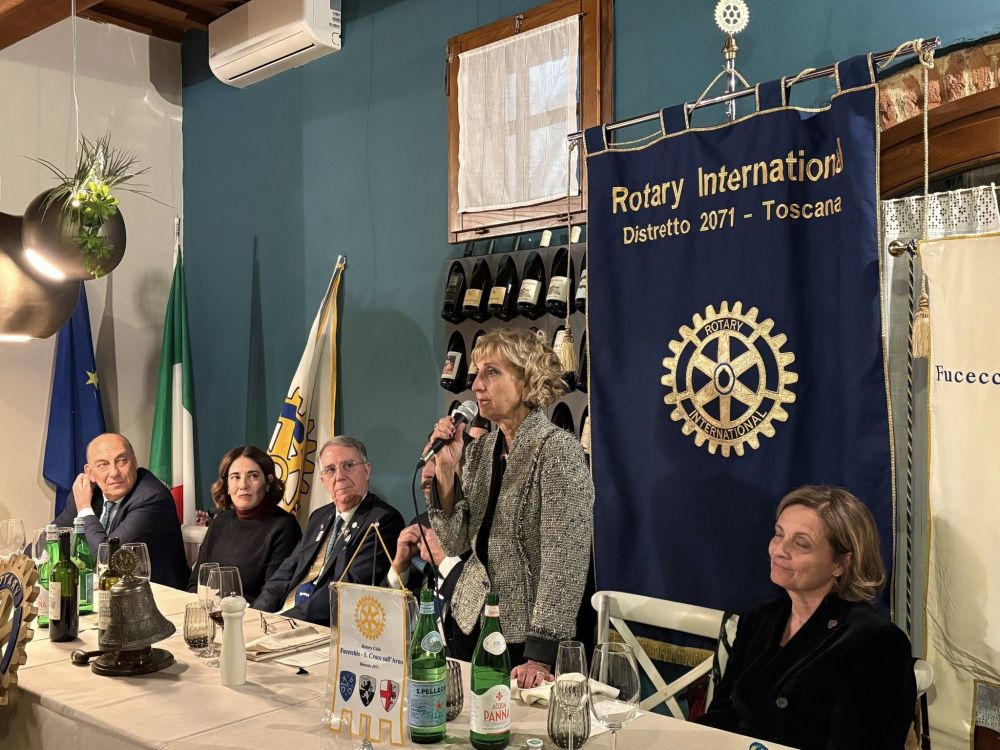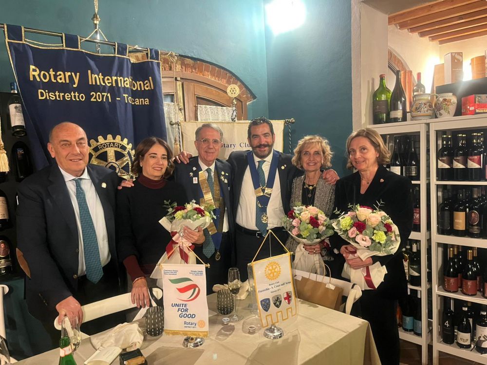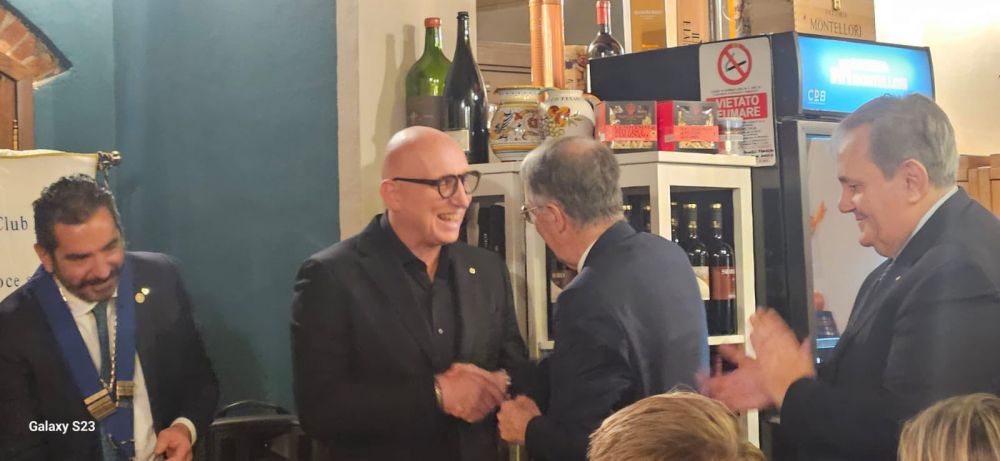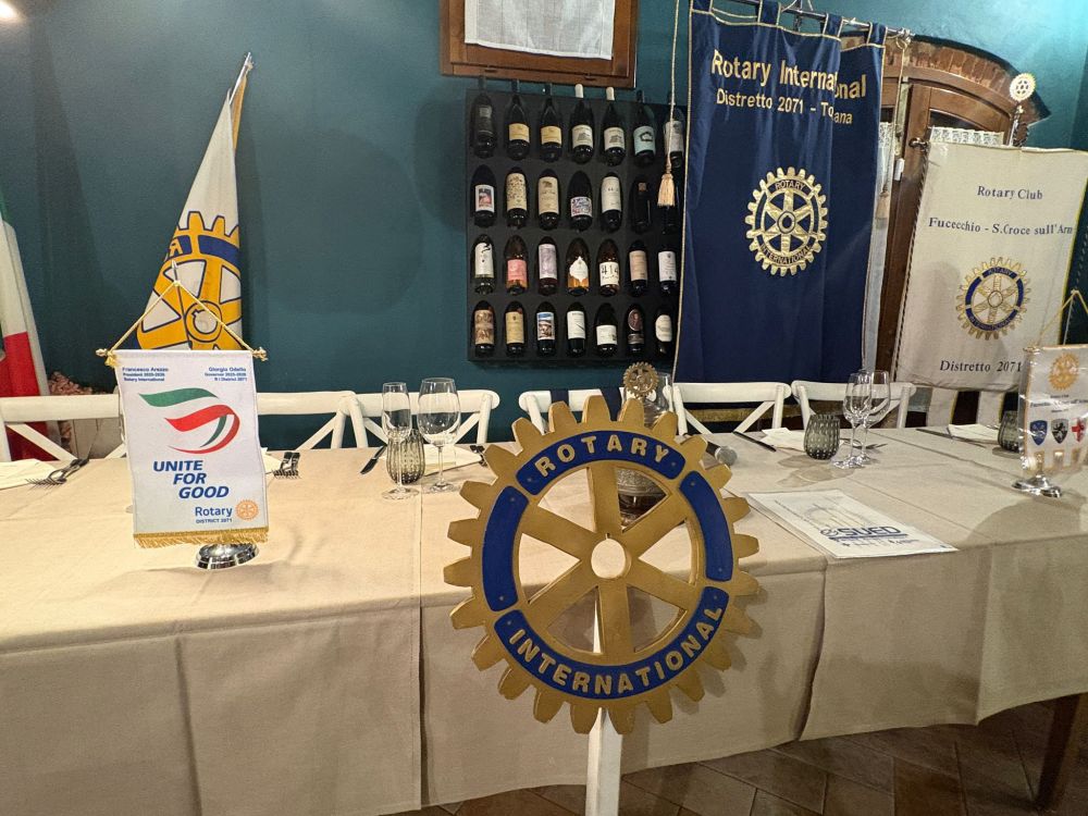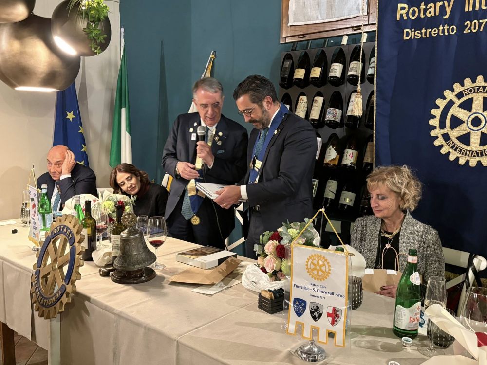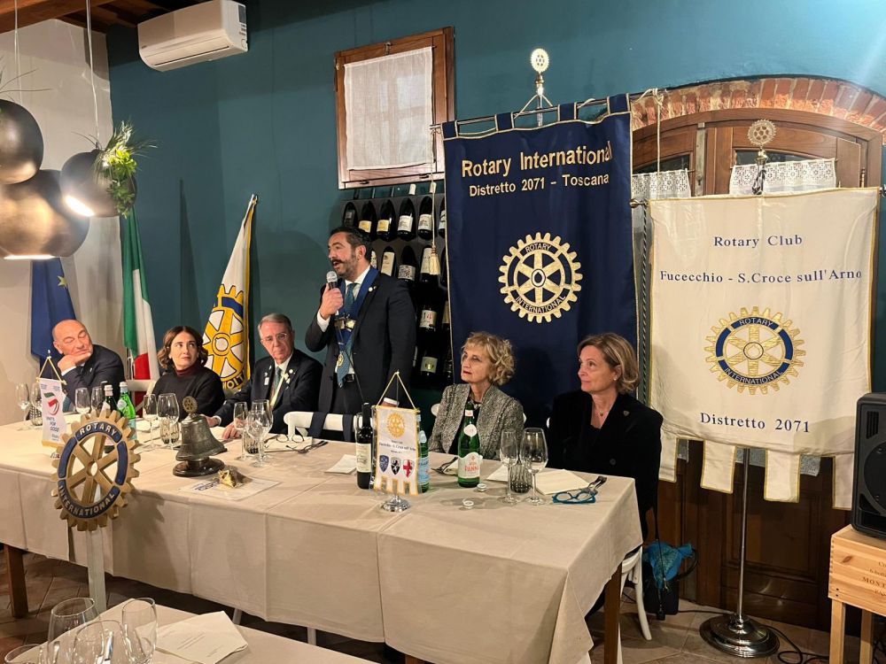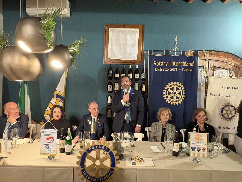 Venerdì 28 novembre 2025 all'Osteria Montellori di Fucecchio, il Governatore del Distretto 2071, Giorgio Odello, insieme all'assistente Andrea Parisi, accompagnati dalle consorti, hanno fatto visita al Rotary club di Fucecchio Santa Croce sull'Arno. Giorgio Odello è socio del Rotary club di Livorno e medico chirurgo specializzato in Chirurgia oculare del segmento anteriore del bulbo, autore sia di pubblicazioni scientifiche di oculistica che di testi di etica rotariana e, in ambito Rotariano, ha ricevuto il Paul Harris Fellow, più volte, l'Attestato di Benefattore del Rotary ed il Premio del Rotary Internazionale "Servire al di sopra di ogni interesse personale”. Il Governatore e l'assistente hanno parlato, come da protocollo, prima con il presidente, Luca Borgioli, poi con il segretario, Elena Maffei, poi ancora con tutto il consiglio direttivo ed i presidenti di commissione, ed infine con i nuovi soci, Silvia Marconcini e Carlo Elia Briganti e durante questi incontri hanno avuto modo di conoscere ed apprezzare i tanti progetti che il nostro club ha già realizzato e che sono in programma nel prossimo futuro, che riguardano eventi che si ripetono ormai da decenni ed iniziative nuove. A questo importante ed atteso appuntamento per ogni Rotary club, si è aggiunto un altrettanto importante evento, l'ingresso di un nuovo socio, presentato dal socio Alessandro Lambertucci, si tratta di Andrea Bagnoli, attualmente Direttore Generale di due aziende del gruppo CHANEL (Conceria Samanta e Conceria Gaiera) dopo aver ricoperto ruoli dirigenziali in aziende del calibro di Ferragamo, Geox e Gruppo Nuti Ivo che fa parte della gruppo LVMH; il nuovo socio, dopo aver letto, di fronte a tutti, la formula d'impegno Rotariano, ha ricevuto direttamente dal Governatore la spilla del Rotary.