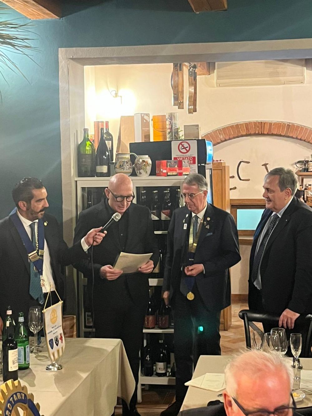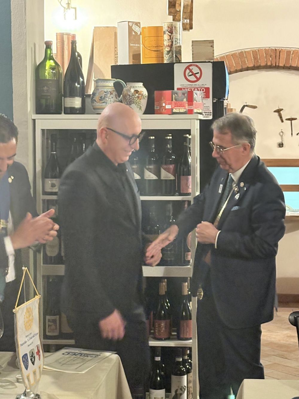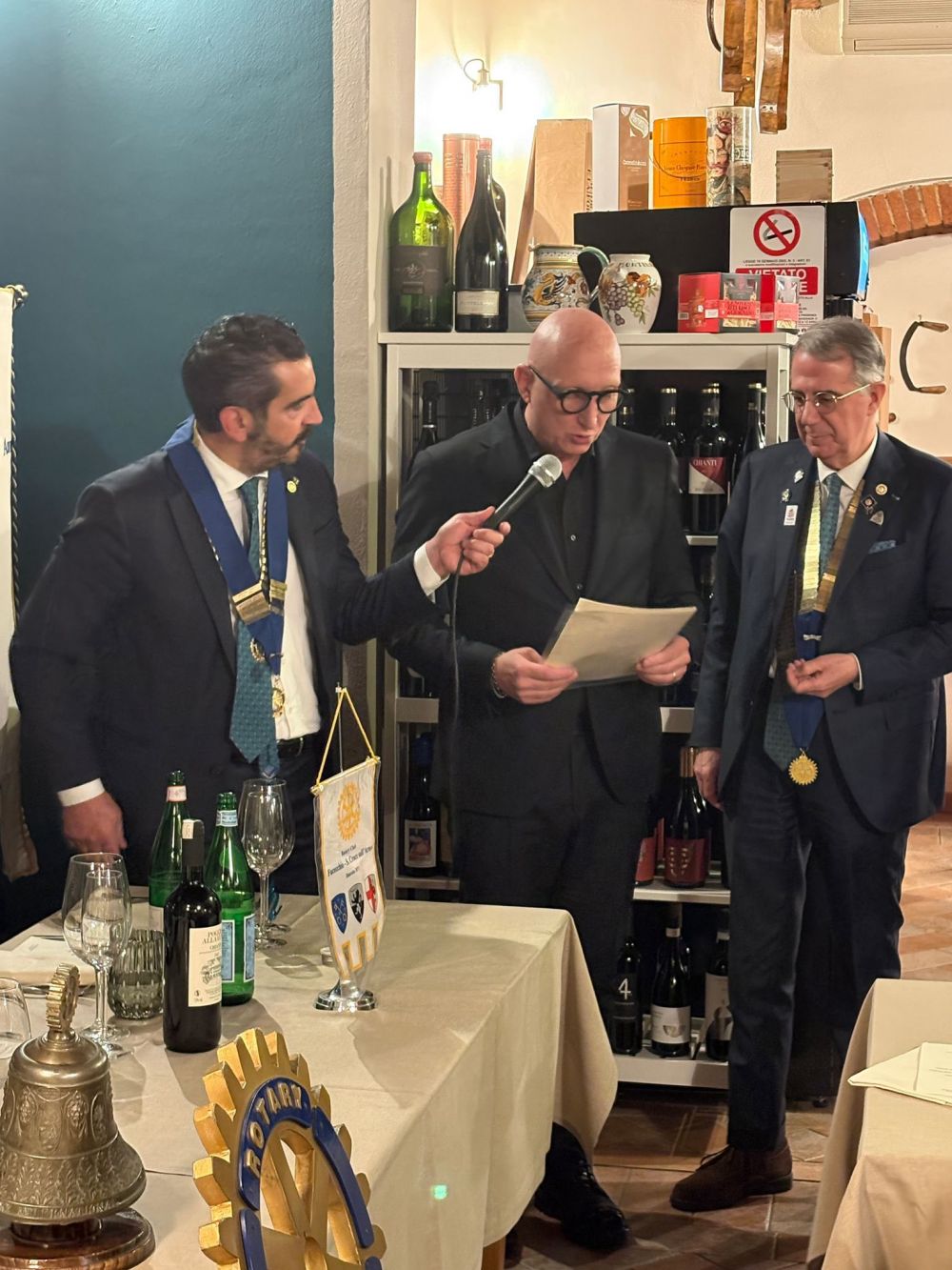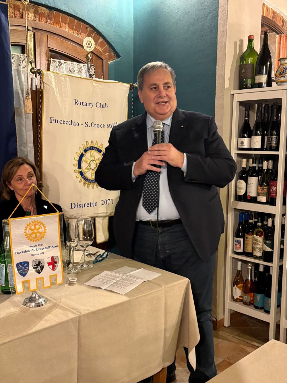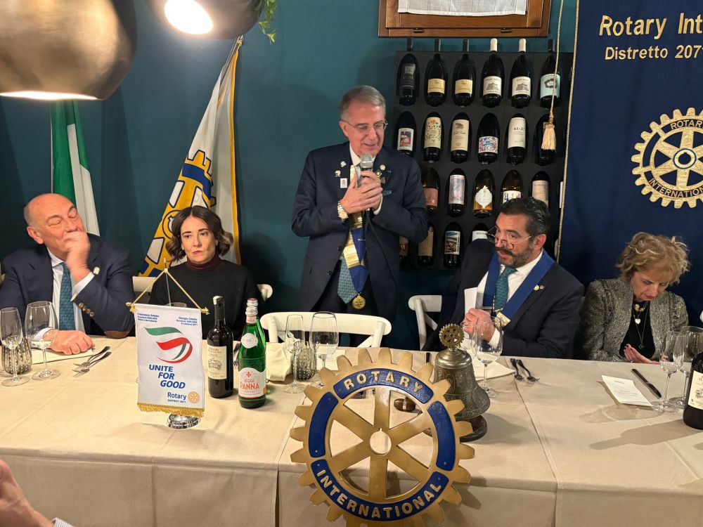 Venerdì 28 novembre 2025 all'Osteria Montellori di Fucecchio, il Governatore del Distretto 2071, Giorgio Odello, insieme all'assistente Andrea Parisi, accompagnati dalle consorti, hanno fatto visita al Rotary club di Fucecchio Santa Croce sull'Arno. Giorgio Odello è socio del Rotary club di Livorno e medico chirurgo specializzato in Chirurgia oculare del segmento anteriore del bulbo, autore sia di pubblicazioni scientifiche di oculistica che di testi di etica rotariana e, in ambito Rotariano, ha ricevuto il Paul Harris Fellow, più volte, l'Attestato di Benefattore del Rotary ed il Premio del Rotary Internazionale "Servire al di sopra di ogni interesse personale”. Il Governatore e l'assistente hanno parlato, come da protocollo, prima con il presidente, Luca Borgioli, poi con il segretario, Elena Maffei, poi ancora con tutto il consiglio direttivo ed i presidenti di commissione, ed infine con i nuovi soci, Silvia Marconcini e Carlo Elia Briganti e durante questi incontri hanno avuto modo di conoscere ed apprezzare i tanti progetti che il nostro club ha già realizzato e che sono in programma nel prossimo futuro, che riguardano eventi che si ripetono ormai da decenni ed iniziative nuove. A questo importante ed atteso appuntamento per ogni Rotary club, si è aggiunto un altrettanto importante evento, l'ingresso di un nuovo socio, presentato dal socio Alessandro Lambertucci, si tratta di Andrea Bagnoli, attualmente Direttore Generale di due aziende del gruppo CHANEL (Conceria Samanta e Conceria Gaiera) dopo aver ricoperto ruoli dirigenziali in aziende del calibro di Ferragamo, Geox e Gruppo Nuti Ivo che fa parte della gruppo LVMH; il nuovo socio, dopo aver letto, di fronte a tutti, la formula d'impegno Rotariano, ha ricevuto direttamente dal Governatore la spilla del Rotary.